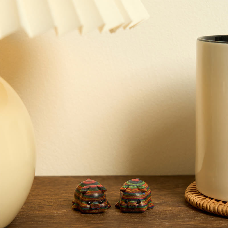 Buddha Stones 2Pcs Mini Regenbogen Eukalyptus Schwein Geschnitzt Positive Dekoration