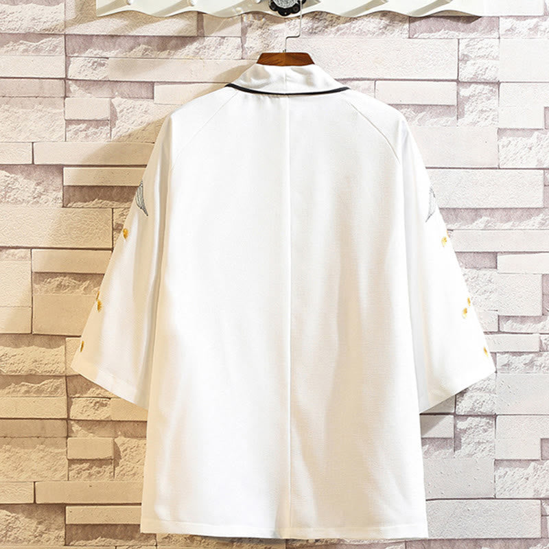 Buddha Stones -Stickerei, Drache, Phönix, Glücksbringer, Wolken, Wellen, Blätter, Kraniche, offene Vorderseite, Jacke, Herren-Kimono - Weißer Kranich-Weiß - US/ UK/AU46, EU56 (5XL) - image 43