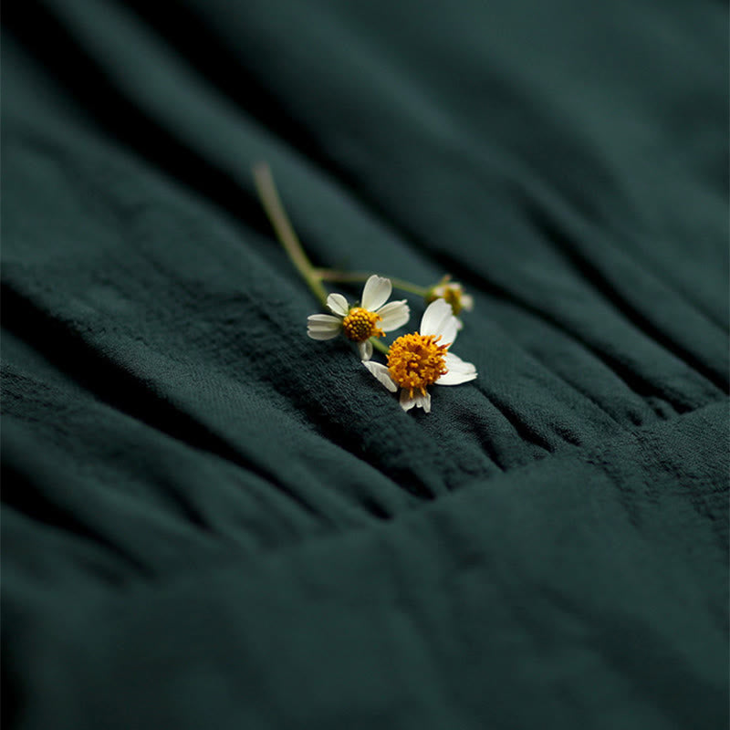 Buddha Stones Baumwoll-Midikleid mit Froschknopfleiste, V-Ausschnitt, langen Ärmeln und Taschen