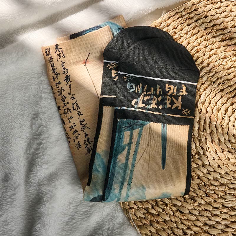 • Künstlerisches Design: Inspiriert von der traditionellen chinesischen Landschaftsmalerei verleihen diese Socken mit eleganten Pinselstrichen im Tuschestil Ihrer Alltagskleidung einen Hauch kultureller Kunstfertigkeit. Eine anmutige, mit Tusche gemalte Lotusblume symbolisiert Reinheit und Widerstandsfähigkeit und verbindet bei jedem Schritt Schönheit mit Bedeutung.