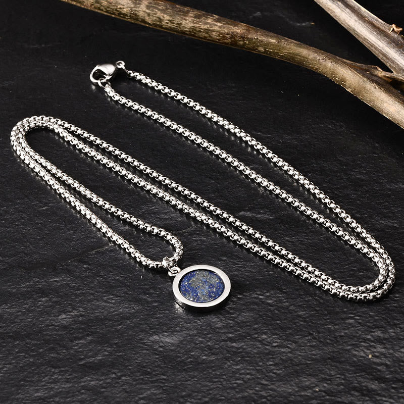 Buddha Stones Naturstein Türkis Tigerauge Lazurit Malachit Titanstahl Reinigung Halskette Anhänger