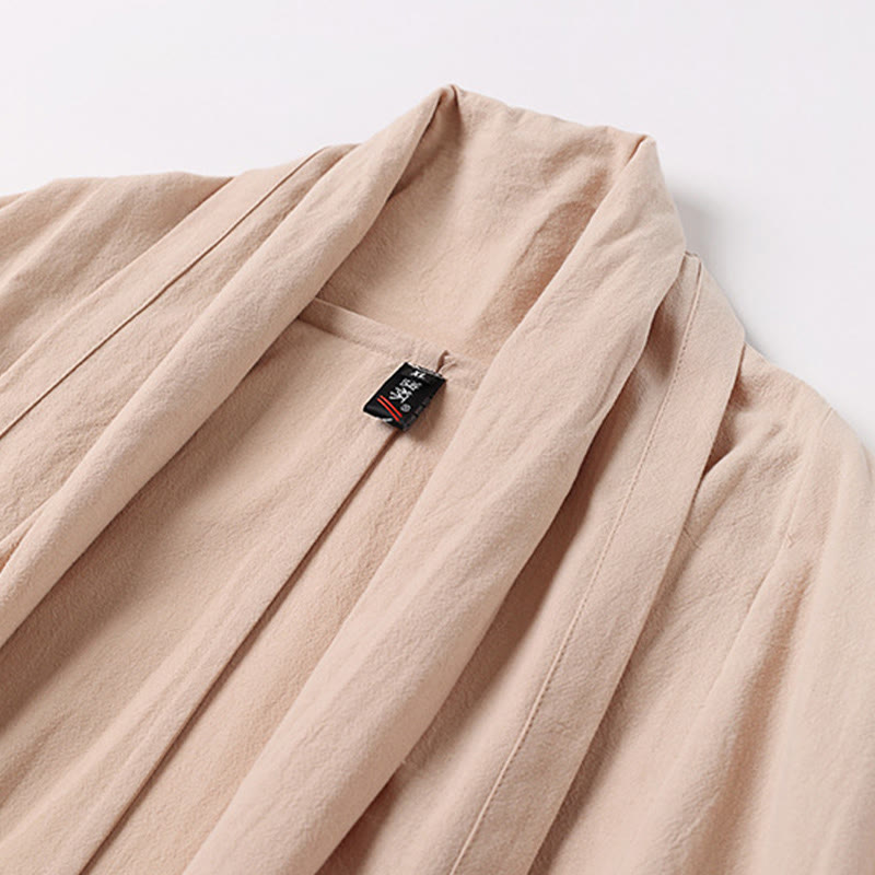 Buddha Stones Frühling Herbst Einfarbig Langärmeliger, mittellanger Kimono mit offener Vorderseite für Herren - image 7