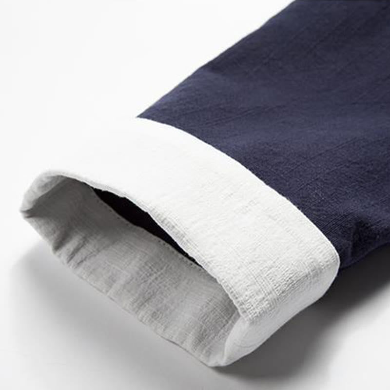 Buddha Stones Chinesische Froschknöpfe Langarm-Design Offene Frontjacke Herren-Kimono aus Baumwolle und Leinen - Mitternachtsblau - US/ UK/AU44, EU54 (4XL) - image 6
