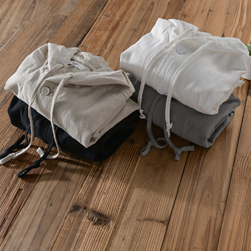 Buddha Stones Gerippter Saum Design Hoodie Langarm Herren Baumwolle Leinen Jacke Hemd Mit Taschen