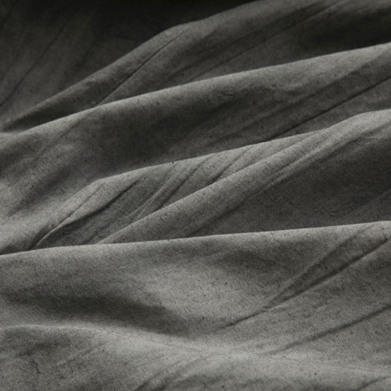 Buddha Stones Casual Grau Herren Frosch-Knopf Hemd Zen Kleidung