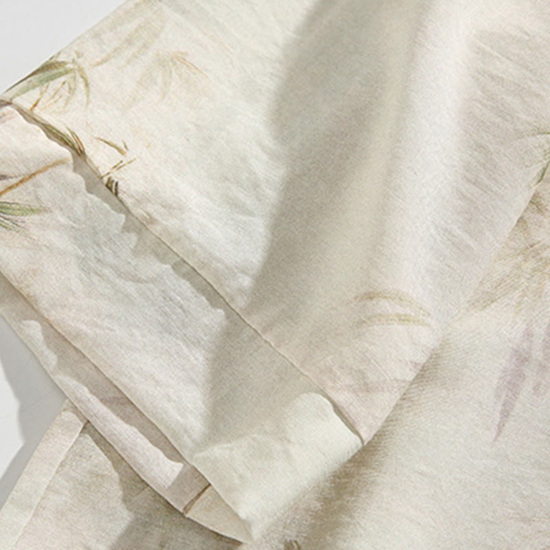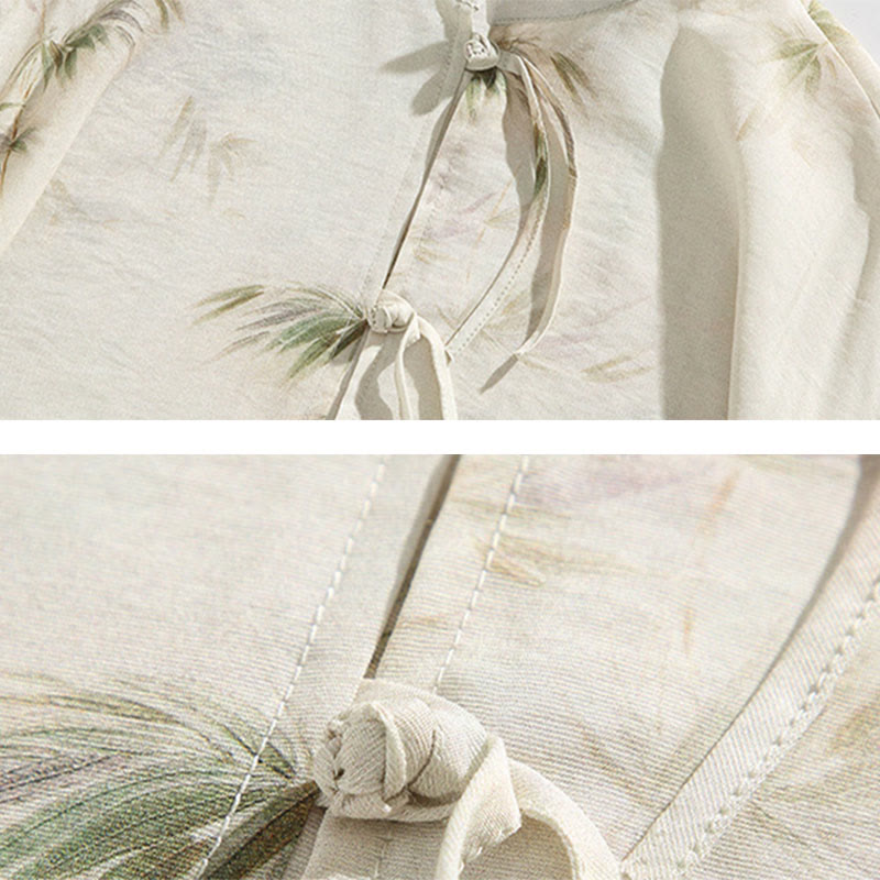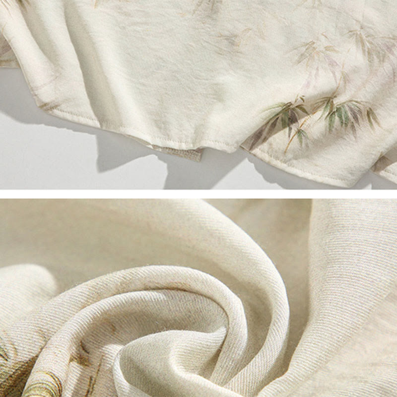 - Schlichtes Design: Die Kleidung ist mit Designelementen aus Bambusblättern versehen.