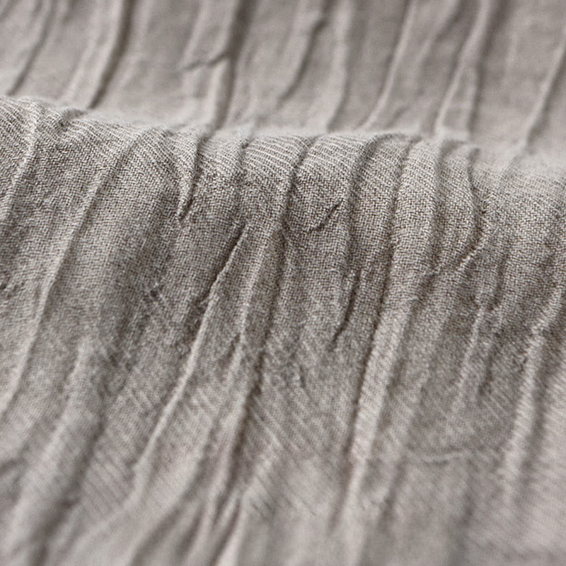 Buddha Stones Solid Langarm Stehkragen Falten Button Down Ramie Leinen Herrenhemden - image 15