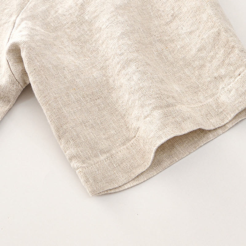 Buddha Stones Solides Sommer-Kurzarm-Knöpfe-Leinen-Herrenhemd mit Taschen