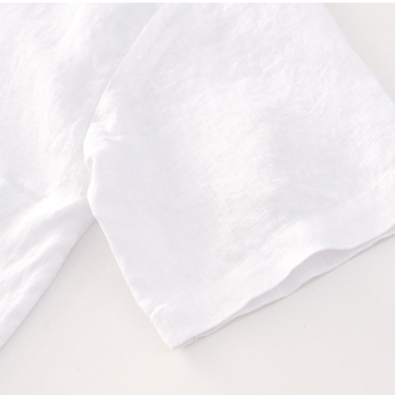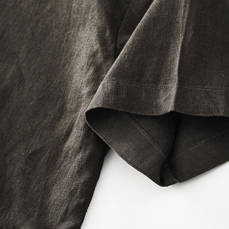 Buddha Stones Solides Sommer-Kurzarm-Knöpfe-Leinen-Herrenhemd mit Taschen - image 24