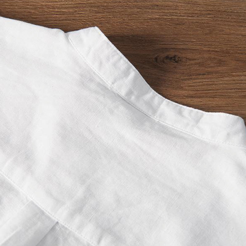 Buddha Stones Soft Stickerei Kranichmuster Stehkragen Baumwolle Leinen Halbknopf Herrenhemd - Weiß - US/ UK/AU42, EU52 (3XL) - image 1