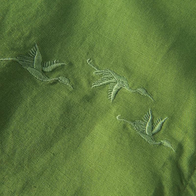 Buddha Stones Soft Stickerei Kranichmuster Stehkragen Baumwolle Leinen Halbknopf Herrenhemd - image 10