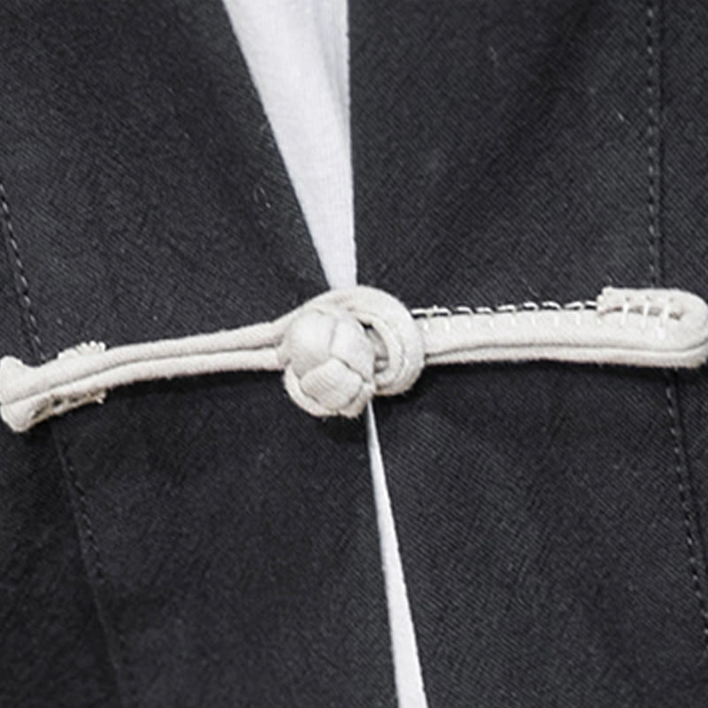 Buddha Stones Chinesischer Frosch-Knopf-Design Offene Frontjacke Herren-Kimono aus Baumwolle und Leinen mit langen Ärmeln - image 16