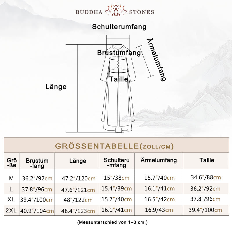 - Größe: Kleidergröße: M(Brustumfang 92 cm/Schulter 38 cm/Länge 120 cm), L(Brustumfang 96 cm/Schulter 39 cm/Länge 121 cm), XL(Brustumfang 100 cm/Schulter 40 cm/Länge 122 cm), 2XL(Brustumfang 104 cm/Schulter 41 cm/Länge 123 cm)