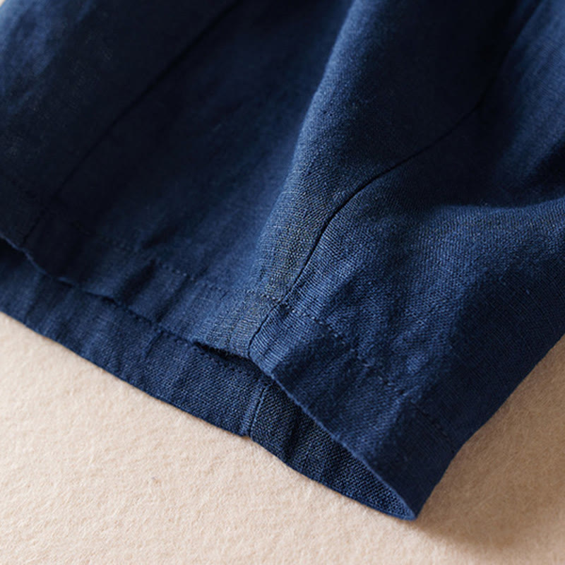 Buddha Stones Farbiger Faden 7-8 Länge Damen Haremshose aus Baumwollleinen mit Taschen - Marine - US12, UK/AU16,EU44 (3XL) - image 9