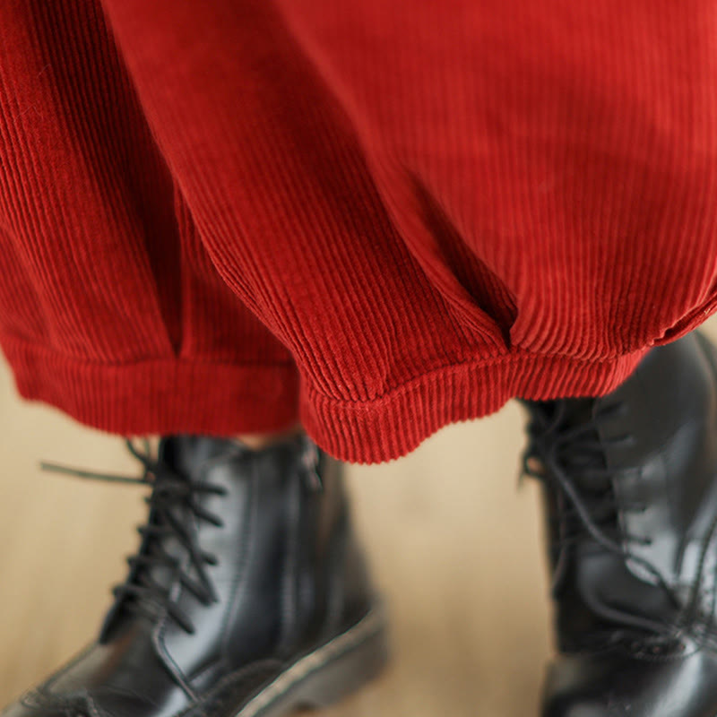 Buddha Stones Damen-Haremshose aus Cord mit Taschen und einfarbigem elastischem Bund