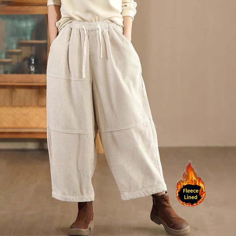 Buddha Stones Damenhose aus Baumwollcord mit Kordelzug und Thermofleecefutter und Taschen