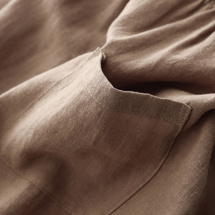 Buddha Stones Lässige, schlichte Damenhose aus Baumwolle in der Länge 7–8 mit Taschen