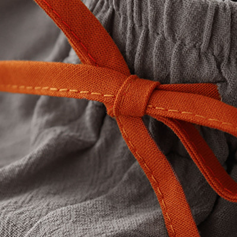 Buddha Stones Lässige, schlichte Damenhose aus Baumwollleinen mit Kordelzug und weitem Bein und Taschen