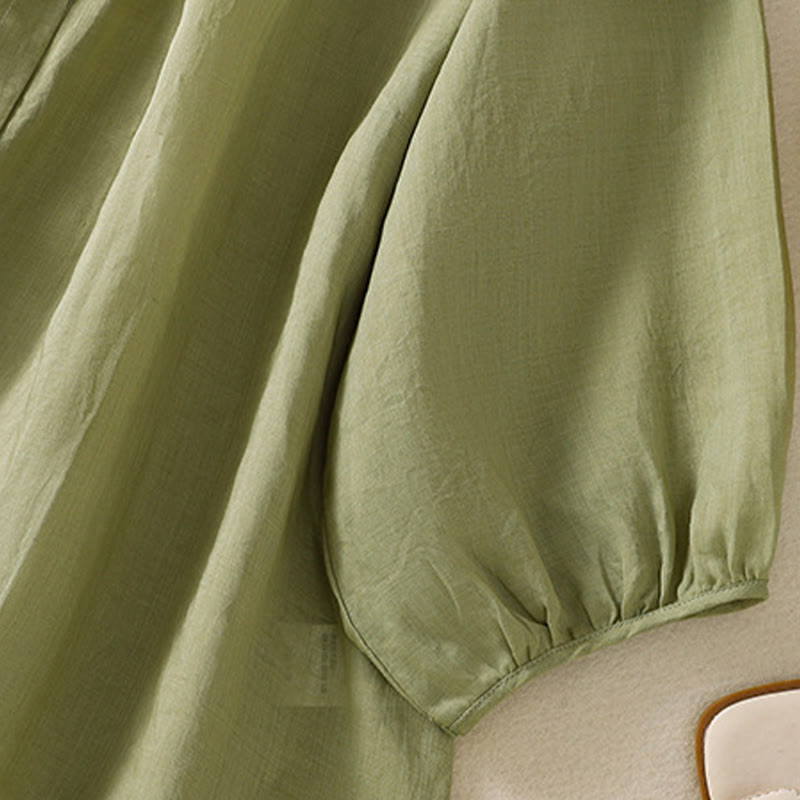 Buddha Stones Baumwollhemd mit Rundhalsausschnitt und Dreiviertelärmeln, einfarbig mit Knopfleiste - image 20