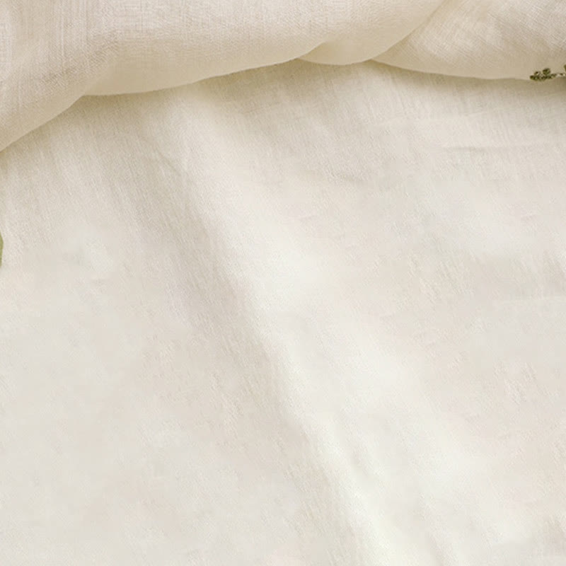 Buddha Stones Beige Floral Grüne Blatt Stickerei Rundhals Dreiviertelärmel Damen Baumwollhemd - image 5
