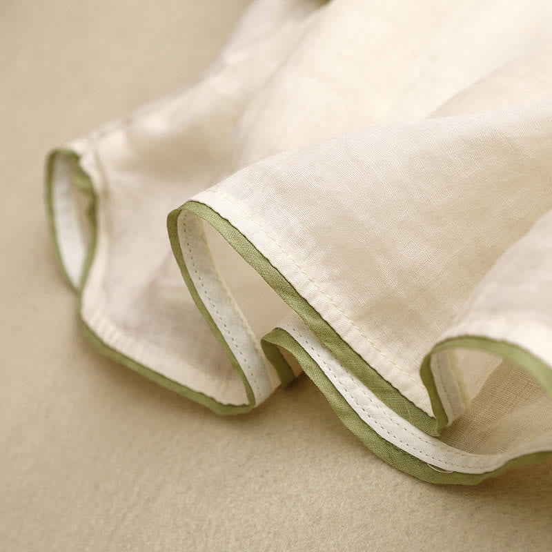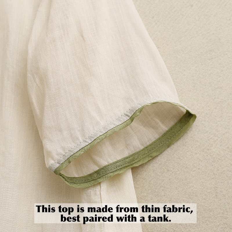 Buddha Stones Beige Floral Grüne Blatt Stickerei Rundhals Dreiviertelärmel Damen Baumwollhemd - image 6