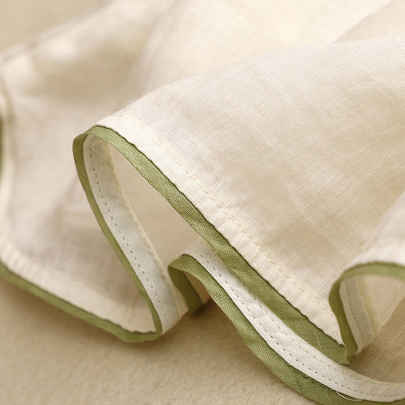Buddha Stones Beige Floral Grüne Blatt Stickerei Rundhals Dreiviertelärmel Damen Baumwollhemd - image 12