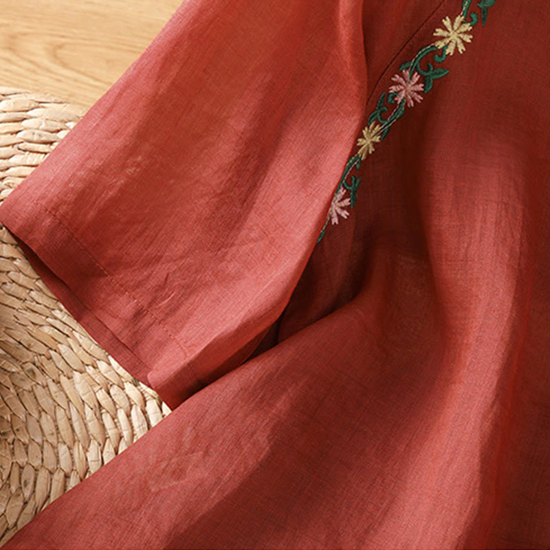 Buddha Stones Casual Stickerei Blumen Baumwolle Polyester Halbarm Damen Rundhalsshirt - Schamottestein - US14, UK/AU18,EU46 (2XL) - image 0