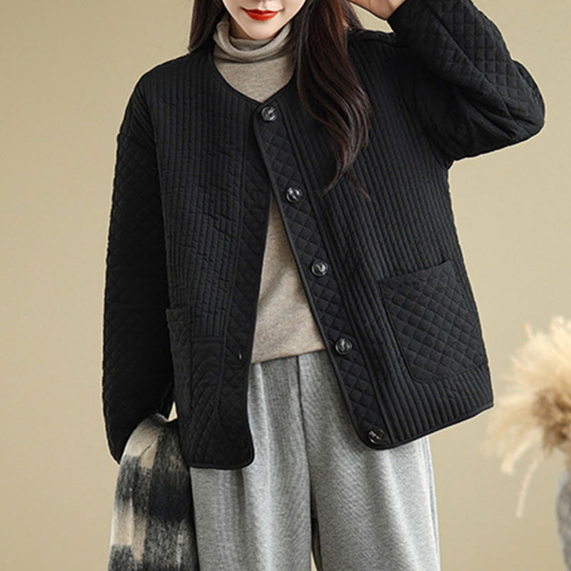 Buddha Stones Damen Vintage-Knöpfe, schlichtes Design, langärmelige Baumwolljacke mit Taschen - image 1