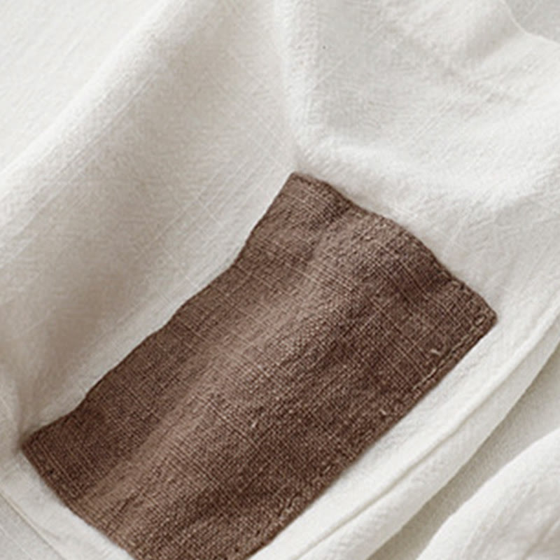 Buddha Stones Damenhemd aus Baumwollleinen mit seitlichem Schlitz und Froschknopf, Farbblockdesign und halblangen Ärmeln und Taschen - image 8