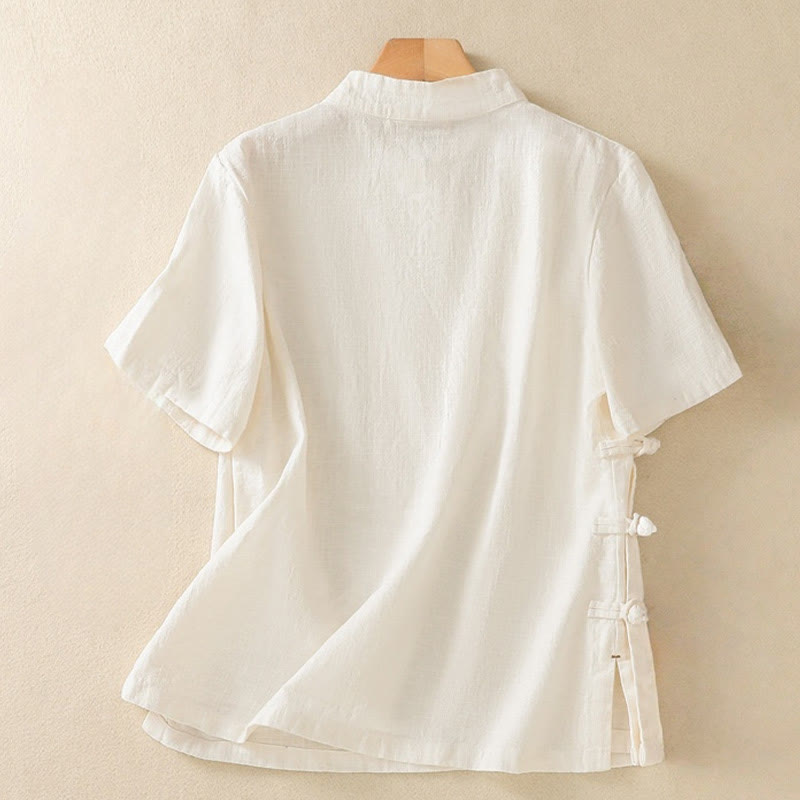 Buddha Stones Lässiger, schlichter, schräger Stehkragen, bunter Froschknopf-Tang-Anzug, Damen-Baumwoll-Leinen-Hemd mit Dreiviertelärmeln, Strickjacke - image 20