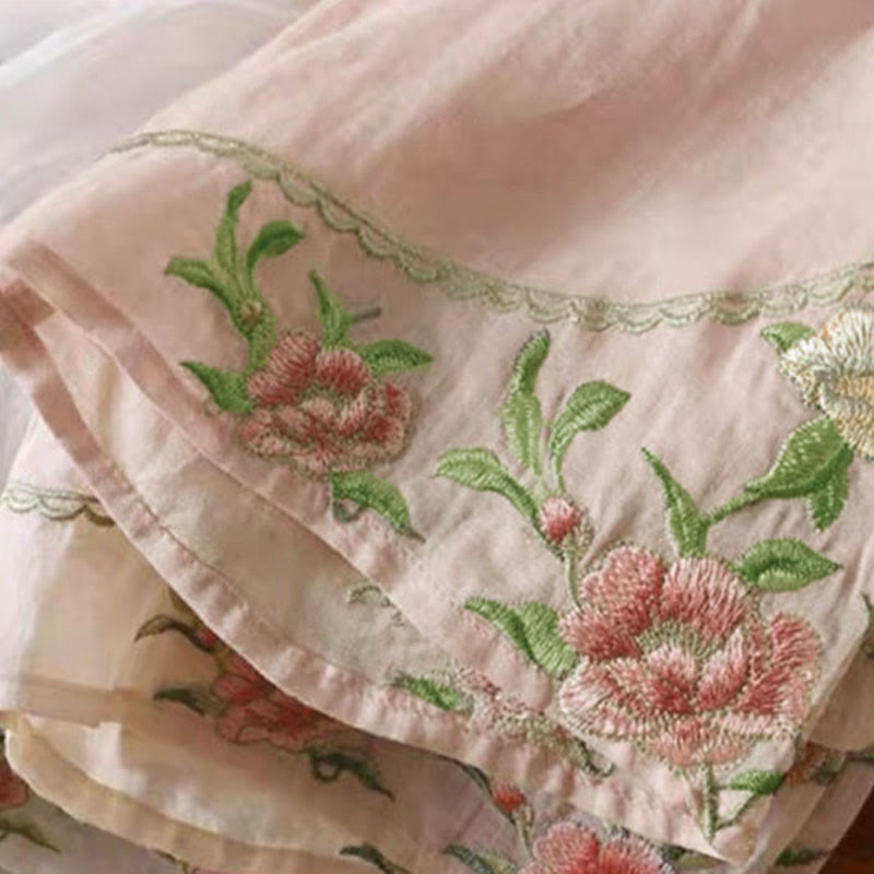 Buddha Stones Lässiges Damen-Baumwoll-Leinen-Shirt mit Vintage-Stickerei und Blumenmuster und chinesischem Froschknopf-Rundhalsausschnitt - MistyRose - US12, UK/AU16,EU44 (3XL) - image 1