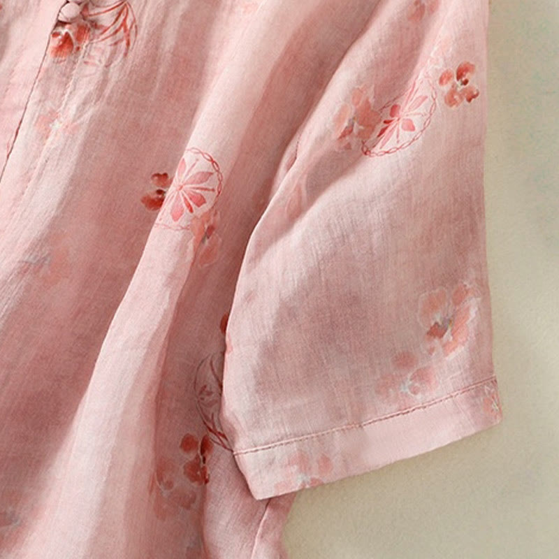 Buddha Stones Printing Frog-Buttons Revers Halbarm Damen Baumwollhemd - Hellkoralle - US8-10, UK/AU12-14,EU40-42 (2XL) - image 0
