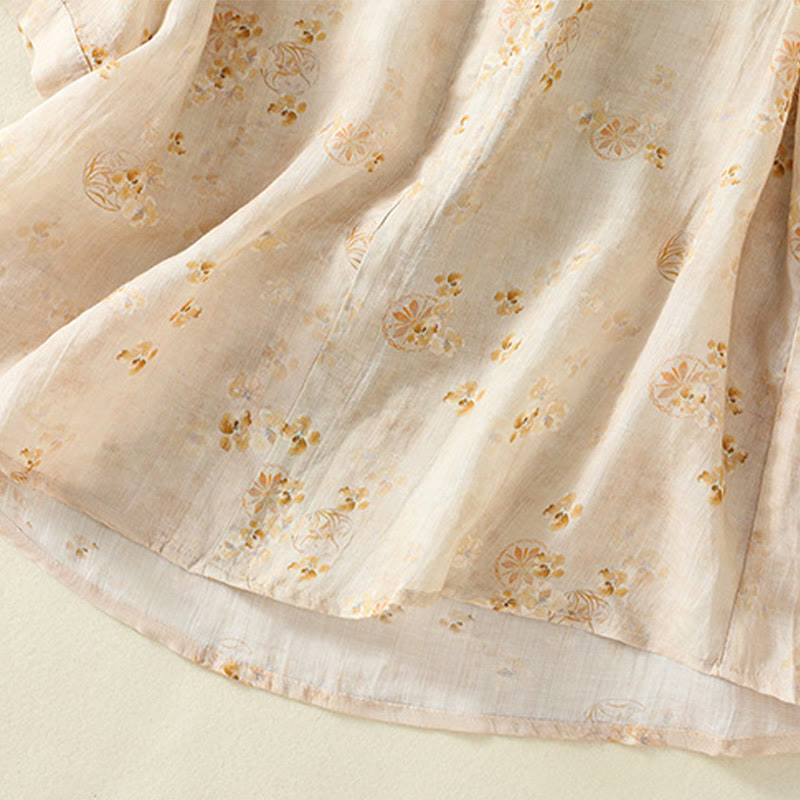 Buddha Stones Printing Frog-Buttons Revers Halbarm Damen Baumwollhemd - image 1