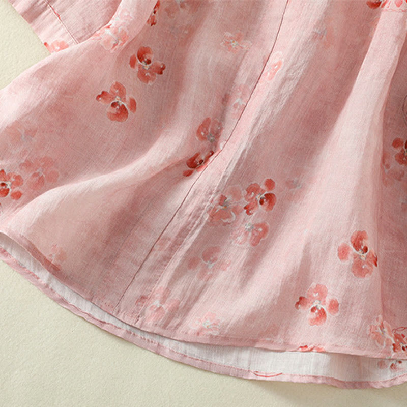 Buddha Stones Printing Frog-Buttons Revers Halbarm Damen Baumwollhemd - image 3