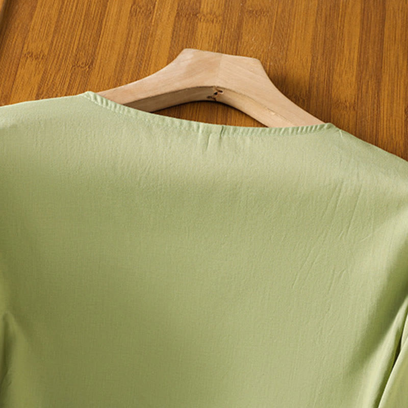 Damen-Baumwollhemd mit Buddha Stones -Stickerei, plissierten Knöpfen und langen Laternenärmeln - image 17