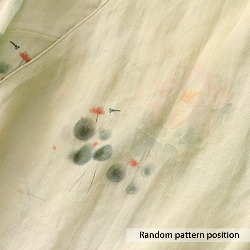 Buddha Stones Lässiges Damen-Hemd mit Lotus-Muster, Froschknopf, schrägem Kragen und Dreiviertelärmeln - image 10