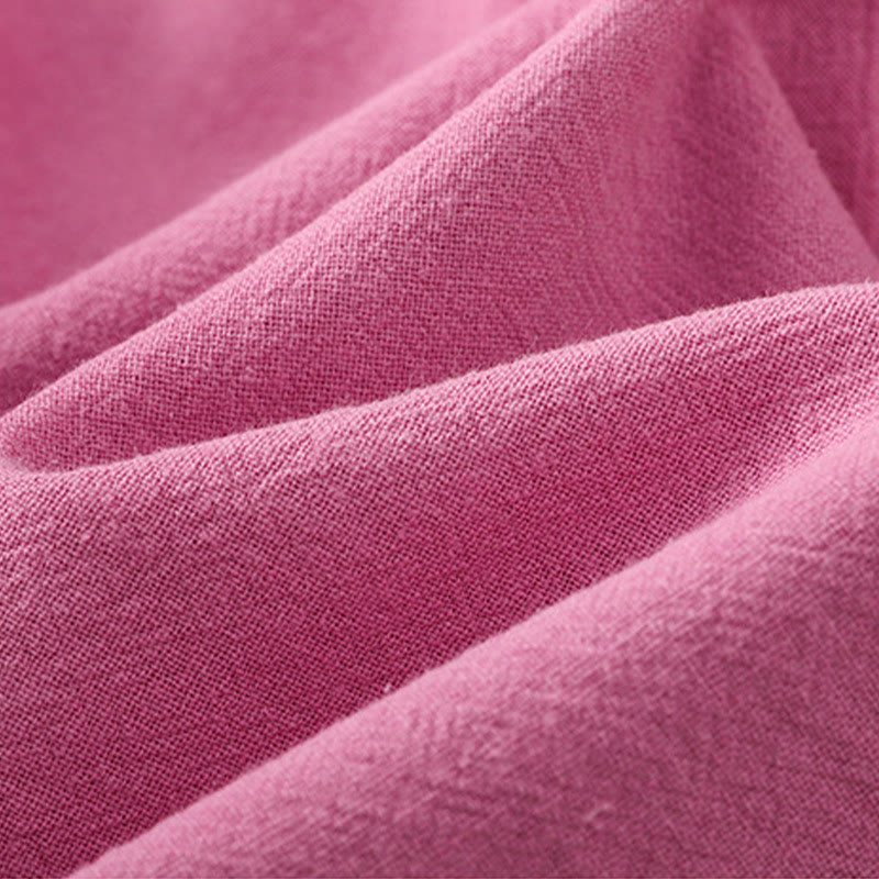 Buddha Stones Lässiges, schlichtes Damen-Baumwoll-Leinen-Hemd mit Knöpfen und halblangen Ärmeln und Tasche - DeepPink - US8-10, UK/AU12-14,EU40-42 (2XL) - image 35