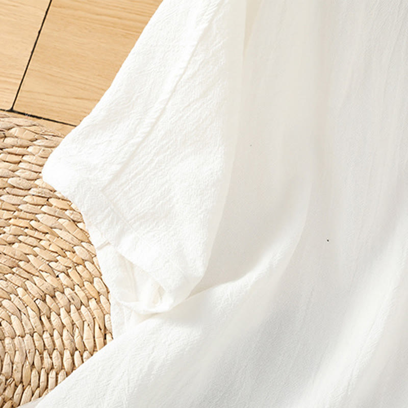 Buddha Stones Lässiges, schlichtes Damen-Baumwoll-Leinen-Hemd mit Knöpfen und halblangen Ärmeln und Tasche