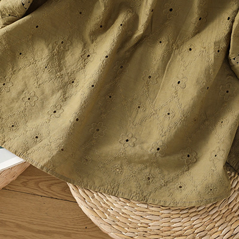 Buddha Stones Lässiges, schlichtes, hohles, gekerbtes Damen-Hemd aus Baumwolle und Leinen mit halben Ärmeln - image 17