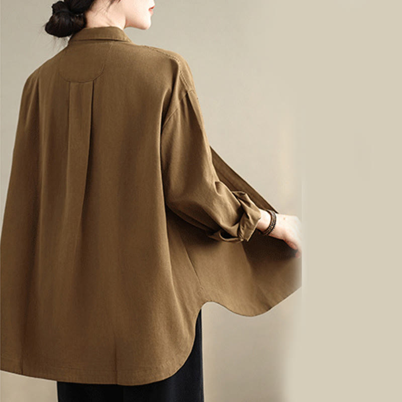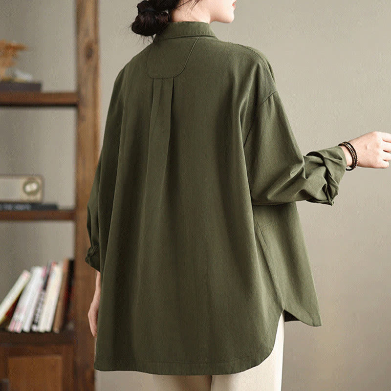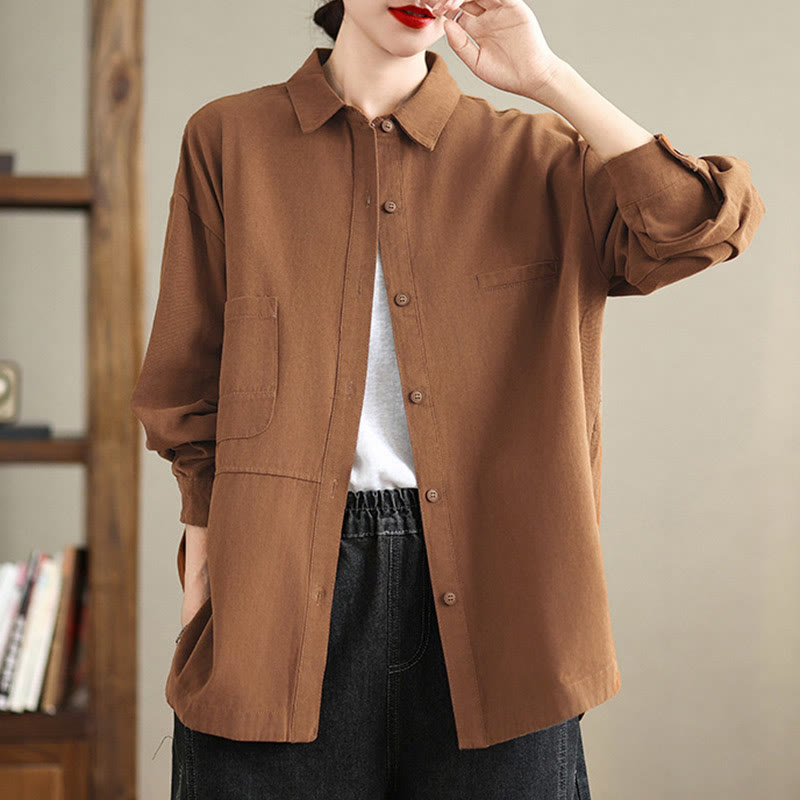 Buddha Stones Lässiges, schlichtes Langarm-Damenhemd aus Baumwolle mit Taschen - image 24