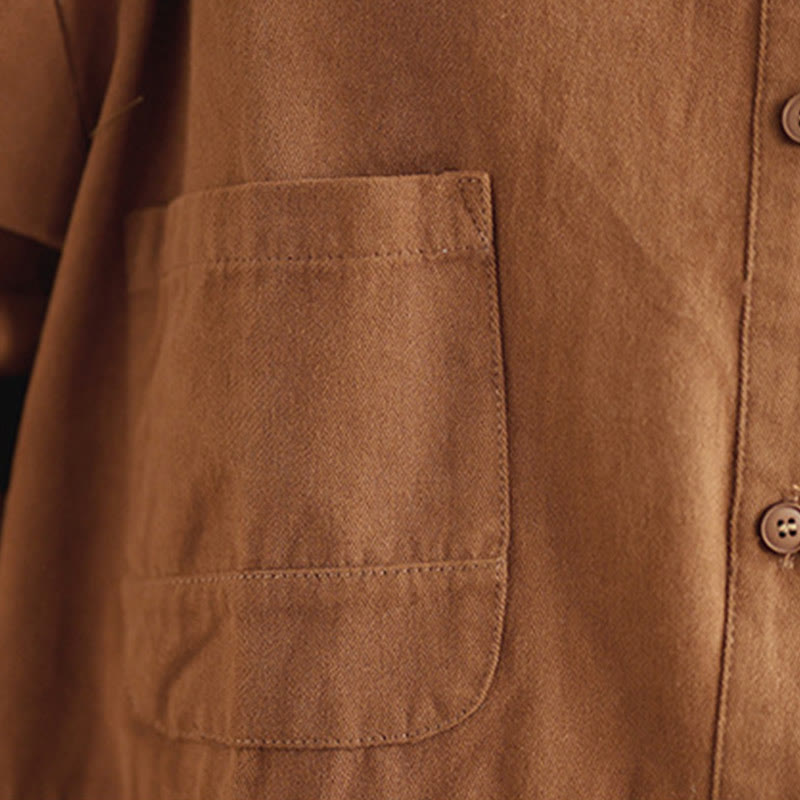 Buddha Stones Lässiges, schlichtes Langarm-Damenhemd aus Baumwolle mit Taschen - image 22