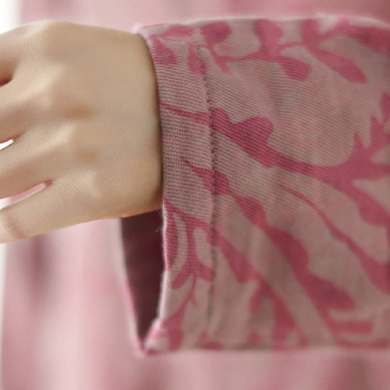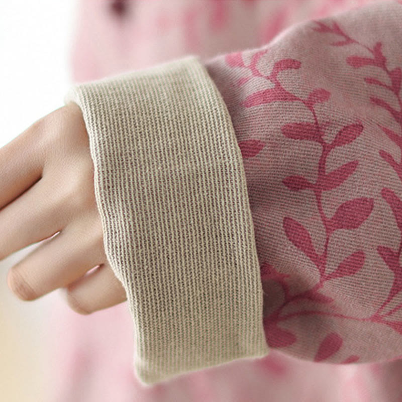 Buddha Stones Leaf Print Damen Baumwoll-Leinen-Jacke mit Taschen