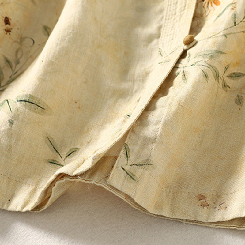 Buddha Stones Pendeln Chinesischer Frosch-Knopf Lange Laternenärmel Damen Baumwoll-Leinen-Hemd - image 4