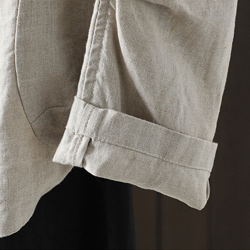 Buddha Stones Pure Color Damen-Baumwolljacke mit V-Ausschnitt und Taschen - image 11