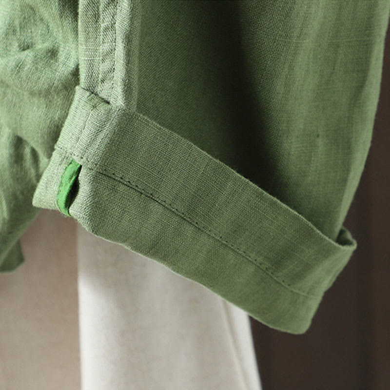 Buddha Stones Pure Color Damen-Baumwolljacke mit V-Ausschnitt und Taschen - image 8