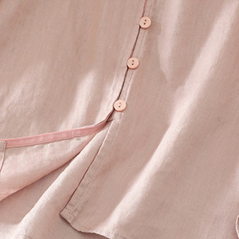 Buddha Stones Solid Buttons V-Ausschnitt Halbarm Damen Shirt