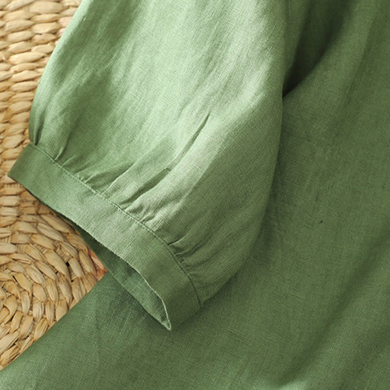 Buddha Stones Solid Buttons V-Ausschnitt Halbarm Damen Shirt - image 20
