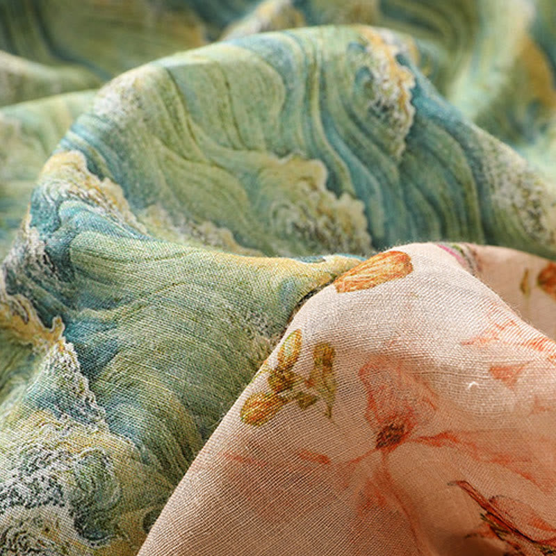Buddha Stones Sommer Casual Printing Frosch-Knopf-Design Damen Langarmshirt aus Baumwolle und Leinen