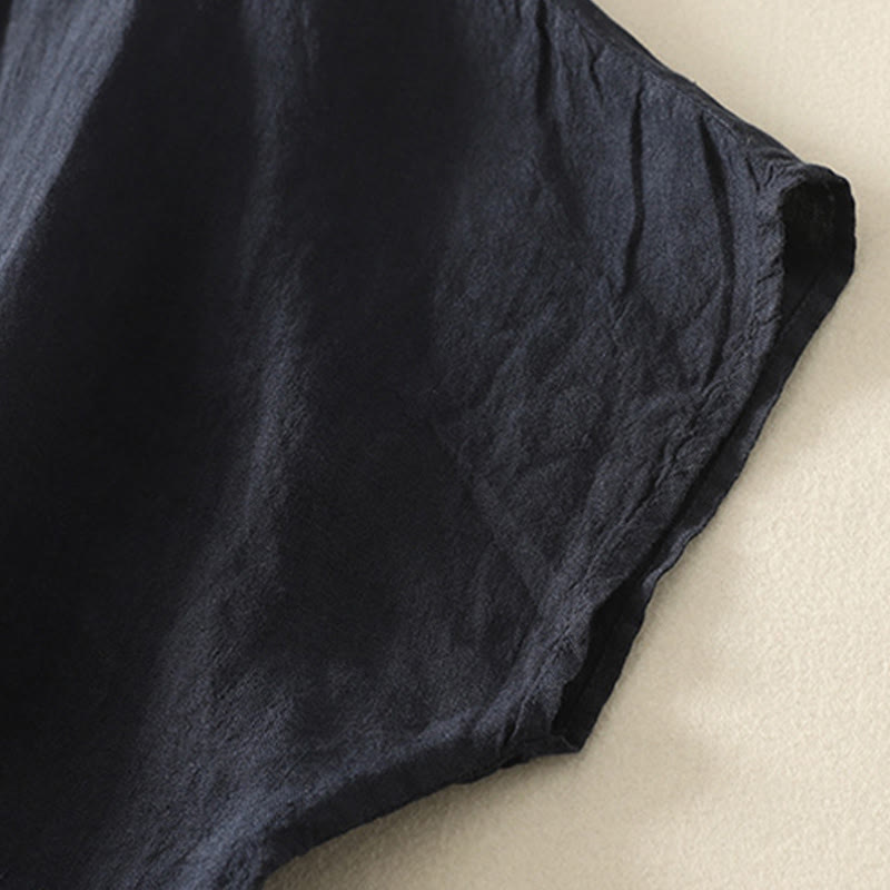 Buddha Stones Sommer-Hemd aus Baumwolle und Leinen mit roten Knöpfen, kurzärmelig, für Damen - image 15