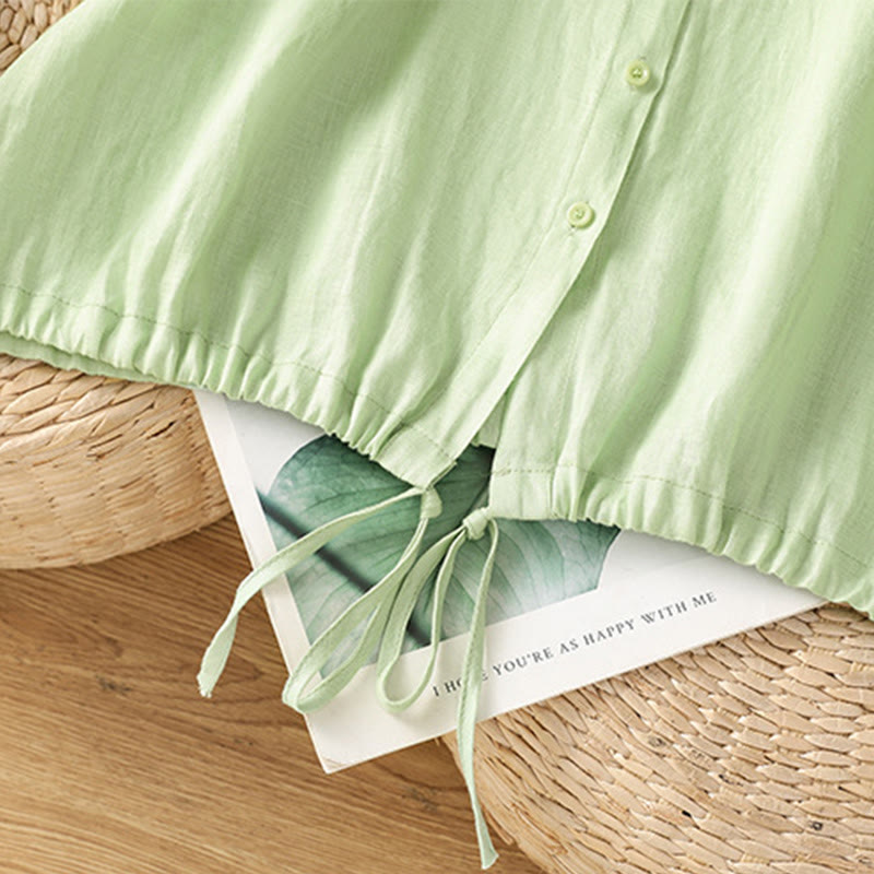 Buddha Stones Sommer Unifarbenes Kurzarm-Baumwollhemd für Damen mit Knopfleiste - image 10